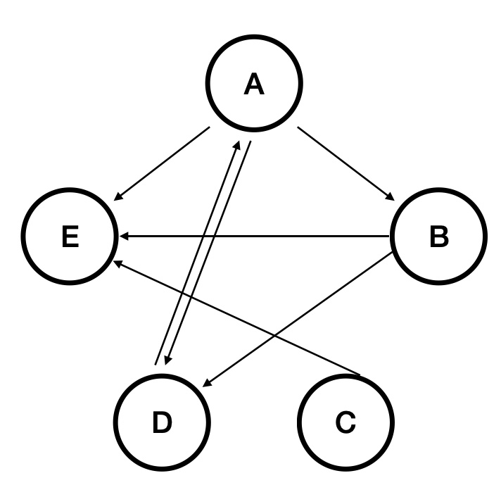 plot(graph_obj_weighted)# This graph does change each time you run this line of code though, so this layout will be different to yours. As you can see, it is hard to ascertain much information from this graph. But we can add layers to the plot, so we can specify a range of characteristics. Using these layers, I later manipulate the size and colour of the nodes, the arrow/edge width, add a curvature to the edges and alter the actual layout of the graph (i.e. circular). I also manipulate the node labels using a rule. But first, we must specify our colour palette based on social network data. This data is generated from our raw adjacency matrix (team1 variable).