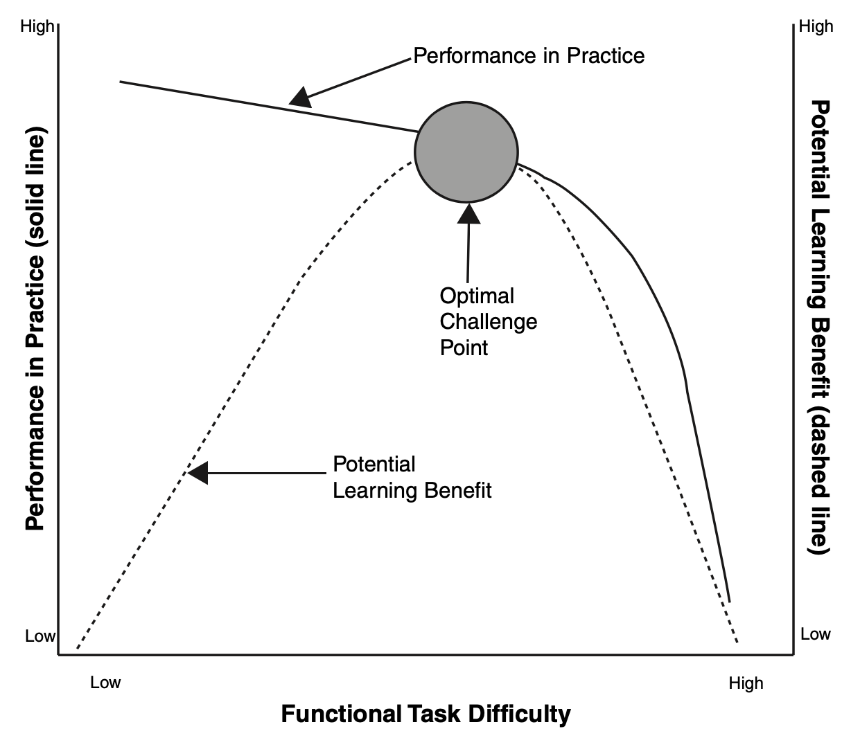 Guadagnoli, M.A. & Lee, T.D. (2004), Challenge Point: A Framework for Conceptualizing the Effects of Various Practice Conditions in Motor Learning, Journal of Motor Behaviour, 36(2), 212-224.